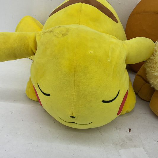 CUTE Preowned LOT 2 Pokemon Eevee Sleeping Pikachu Brown Yellow Plush Dolls Toys