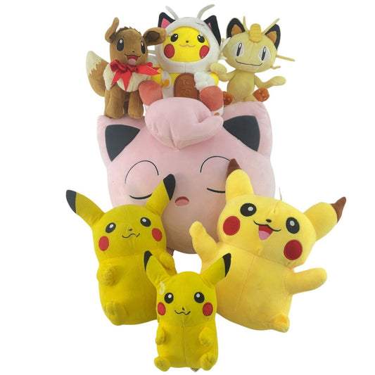 5+ LBs Lot Pre-Owned Pokemon Plush Stuffed Toy Jigglypuff Pikachu Meowth Eevee