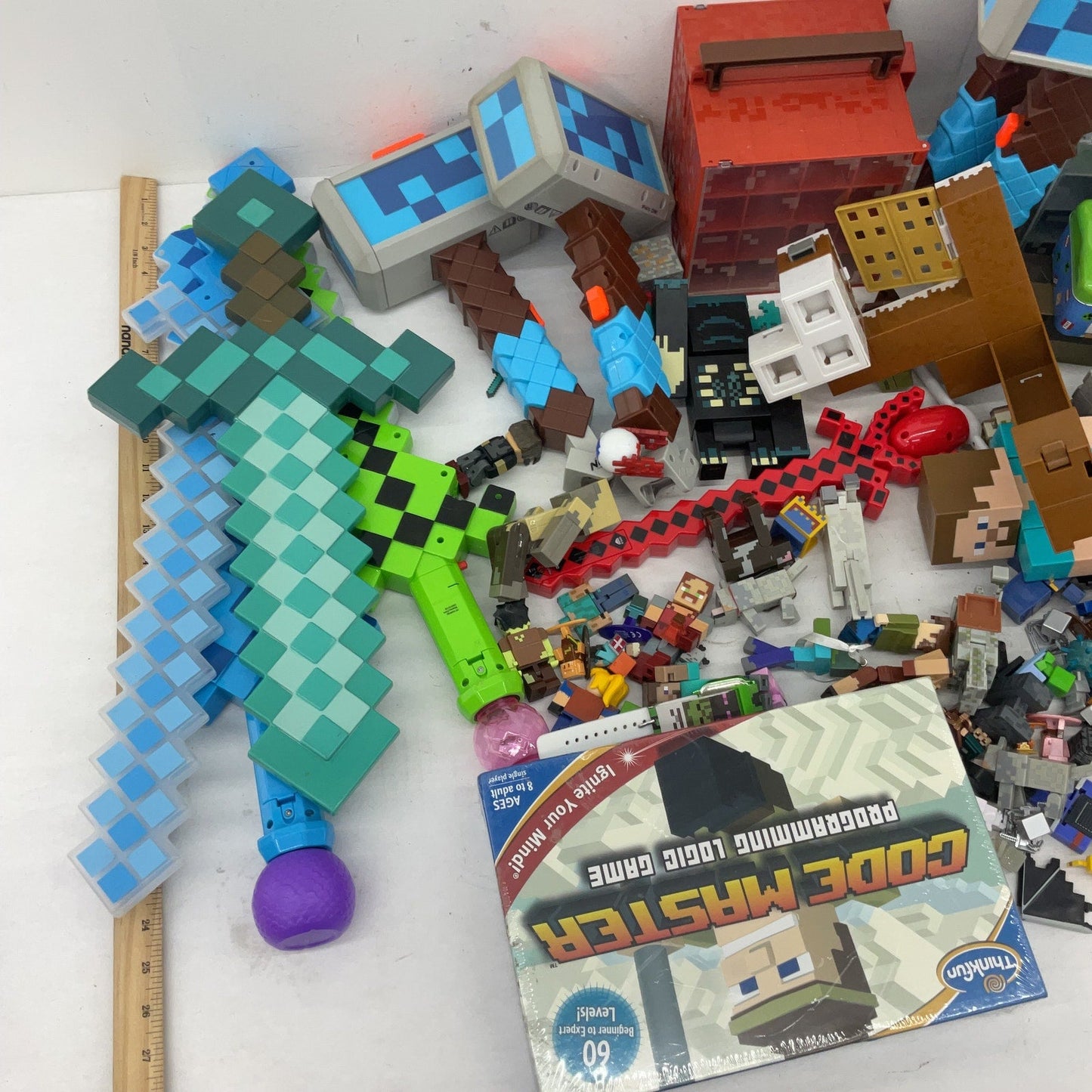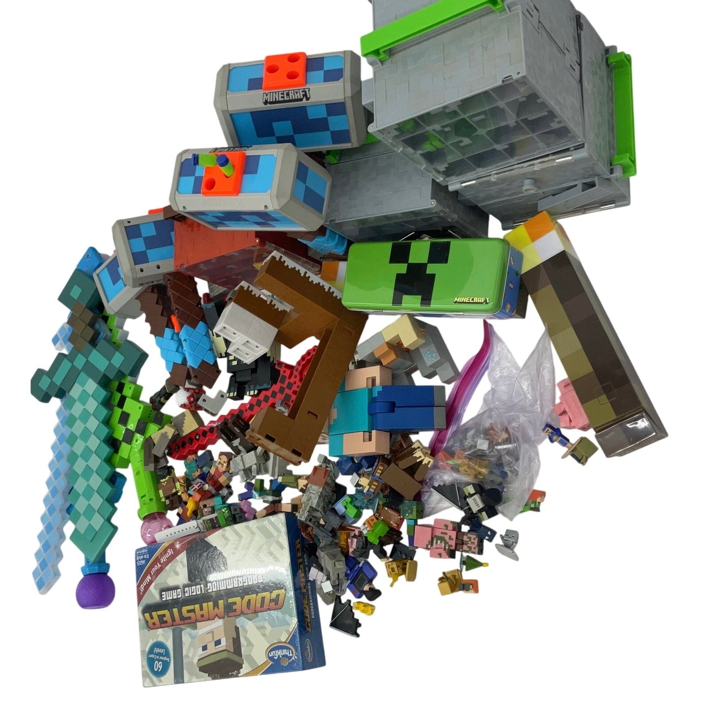 Minecraft Toy Figures Play Set Parts Animals Swords Toys Preowned LOT 22 lbs